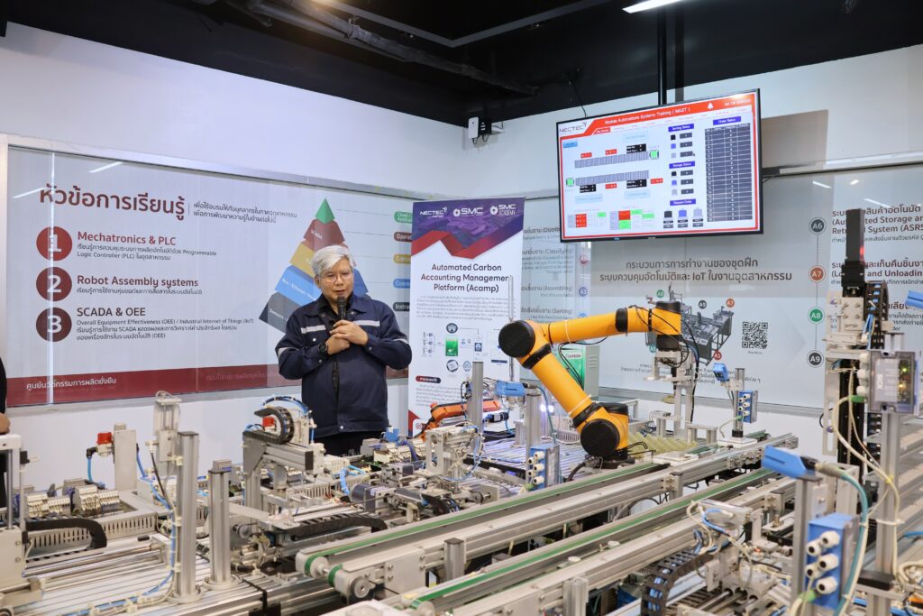 ในโอกาสนี้ ศาสตราจารย์ ดร.ชูกิจ ลิมปิจำนงค์ ได้กล่าวถึงบทบาทของ สวทช. ที่ได้ปรับแนวทางการดำเนินงานจากการมุ่งเน้นความเป็นเลิศทางวิชาการ สู่การนำงานวิจัย วิทยาศาสตร์ เทคโนโลยี และนวัตกรรมไปใช้ประโยชน์ได้จริง โดยให้ความสำคัญกับการสร้าง “ผลกระทบ (Impact)” ต่อภาคอุตสาหกรรมและประชาชนในวงกว้าง สวทช. พร้อมทำงานร่วมกับภาคอุตสาหกรรมอย่างใกล้ชิด ตั้งแต่การวิจัยและพัฒนา กระบวนการผลิต ไปจนถึงการยกระดับสินค้าและซัพพลายเชน เพื่อเพิ่มประสิทธิภาพ ลดต้นทุน และขยายผลเชิงพาณิชย์อย่างเป็นรูปธรรม โดยเฉพาะการผลักดันแนวคิด Smart Manufacturing ด้วยเทคโนโลยีดิจิทัล ผ่านศูนย์นวัตกรรมการผลิตยั่งยืน (SMC)