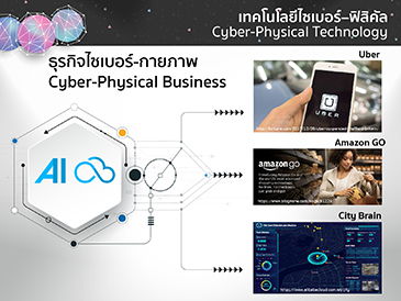 เมืองกายภาพ หรือ physical city และเมืองไซเบอร์ หรือ cyber city จะเชื่อมโยงกันผ่านเครือข่ายเซนเซอร์ คอมพิวเตอร์ และอุปกรณ์หลากหลายชนิด เกิดความเป็น เมืองแบบไซเบอร์–ฟิสิคัล (Cyber–Physical City) โดยมีเทคโนโลยีอินเทอร์เน็ตของสรรพสิ่ง หรือ ไอโอที (IoT) เป็นตัวช่วยสำคัญ ทำให้เกิดโอกาสทางธุรกิจแบบใหม่จำนวนมาก ทั้งธุรกิจบริการ มีตัวอย่างบ้างแล้ว เช่น ระบบบริการรถของอูเบอร์ (UBER), ร้านสะดวกซื้อที่ไม่มีแคชเชียร์ (Amazon Go) ปัจจุบัน สวทช. กำลังสร้างฐานเทคโนโลยีระบบนี้อยู่ผ่าน โครงการเน็ตพาย (NETPIE) และโครงการเมืองอัจฉริยะ (smart city) โดยร่วมกับหน่วยงานพันธมิตรทั้งภาครัฐและเอกชน เป็นต้น