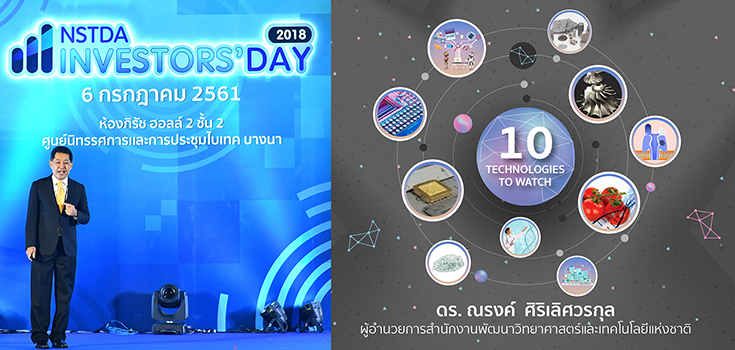 ปีนี้ก็เช่นกัน ดร.ณรงค์ ศิริเลิศวรกุล ผู้อำนวยการ สวทช. บรรยายพิเศษ เรื่อง “10 เทคโนโลยีที่น่าจับตามองสำหรับธุรกิจ (10 Technologies to Watch)” ซึ่งแนะนำ 10 เทคโนโลยีใหม่ที่จะส่งผลกระทบในช่วงเวลา 5-10 ปีในอนาคต เพื่อให้ผู้ประกอบการและคนทั่วไปกว่า 600 คนรับฟัง ภายใต้งาน Thailand Tech Show 2018 ที่ สวทช. จัดขึ้นภายใต้แนวคิด “เสริมแกร่งธุรกิจด้วยวิทย์และนวัตกรรม” เมื่อวันที่ 4-8 กรกฎาคมที่ผ่านา ณ ไบเทค บางนา เพื่อถ่ายทอดองค์ความรู้และต่อยอดนวัตกรรมให้กับนักลงทุนเป้าหมายและผู้ประกอบการไทย ใช้วิทยาศาสตร์ เทคโนโลยี และนวัตกรรม (วทน.) พัฒนากระบวนการผลิตให้มีขีดความสามารถในการแข่งขันอย่างยั่งยืน รวมทั้งการอัปเดตเทรนด์เทคโนโลยีที่จะพลิกชีวิตและธุรกิจของใครก็ได้ในทุกมิติ