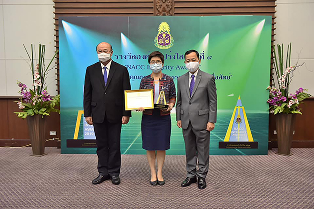 26 มิถุนายน 2563 – ณ ห้องนนทบุรี สำนักงาน ป.ป.ช. : พลตำรวจเอก วัชรพล ประสารราชกิจ ประธานกรรมการ สำนักงานคณะกรรมการป้องกันและปราบปรามการทุจริตแห่งชาติ (สำนักงาน ป.ป.ช.) และพลเอกบุณยวัจน์ เครือหงส์ กรรมการ ป.ป.ช. ให้เกียรติมอบรางวัล  ครั้งที่ 9 (NACC Integrity Awards) ให้แก่ ดร.ลดาวัลย์ กระแสร์ชล รองผู้อำนวยการสำนักงานพัฒนาวิทยาศาสตร์และเทคโนโลยีแห่งชาติ (สวทช.) เพื่อเป็นเกียรติยศแห่งคุณธรรม จริยธรรม และความซื่อสัตย์สุจริตแก่องค์กร