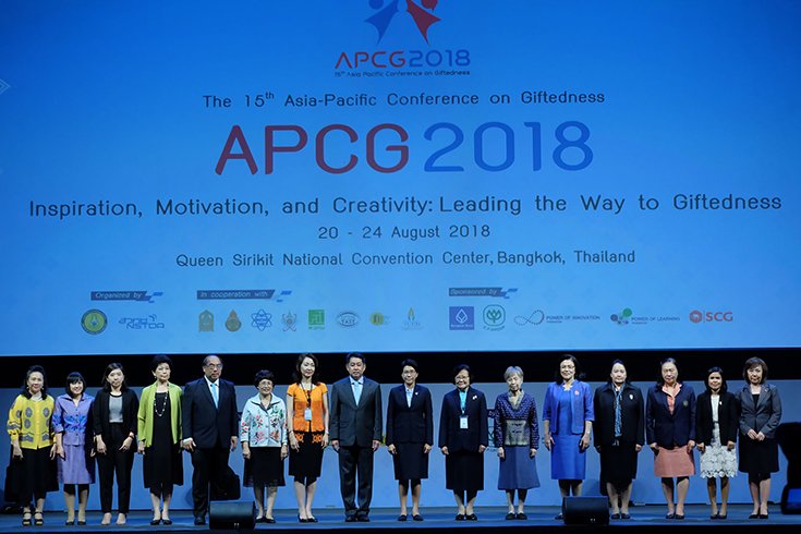 20 สิงหาคม 2561 ณ ห้องเพลนารี ฮออล์ 1 ศูนย์การประชุมแห่งชาติสิริกิติ์ : กระทรวงวิทยาศาสตร์และเทคโนโลยี (วท.) โดย สำนักงานพัฒนาวิทยาศาสตร์และเทคโนโลยีแห่งชาติ (สวทช.) ร่วมกับ กระทรวงศึกษาธิการ โดยสำนักงานคณะกรรมการการศึกษาขั้นพื้นฐาน (สพฐ.) จัด “การประชุมวิชาการนานาชาติด้านการพัฒนาผู้มีความสามารถพิเศษ ครั้งที่ 15 (The 15th Asia-Pacific Conference on Giftedness 2018: APCG2018)” ซึ่งจัดขึ้นทุกๆ 2 ปี เพื่อเป็นเวทีแลกเปลี่ยนประสบการณ์ทางวิชาการด้านการวิจัยและพัฒนาผู้มีความ สามารถพิเศษ และเผยแพร่องค์ความรู้พัฒนาเครือข่ายการทำงานระดับนานาชาติ ด้านการส่งเสริมผู้มีความสามารถพิเศษ ตลอดจนเพิ่มพูนศักยภาพและสร้างแรงบันดาลใจให้เยาวชนได้พัฒนาศักยภาพตนเองอย่างถูกหลักและเต็มความสามารถ โดยมี ดร.กัญญวิมว์ กีรติกร ผู้ช่วยรัฐมนตรีว่าการกระทรวงวิทยาศาสตร์และเทคโนโลยี เป็นประธานเปิดการประชุม