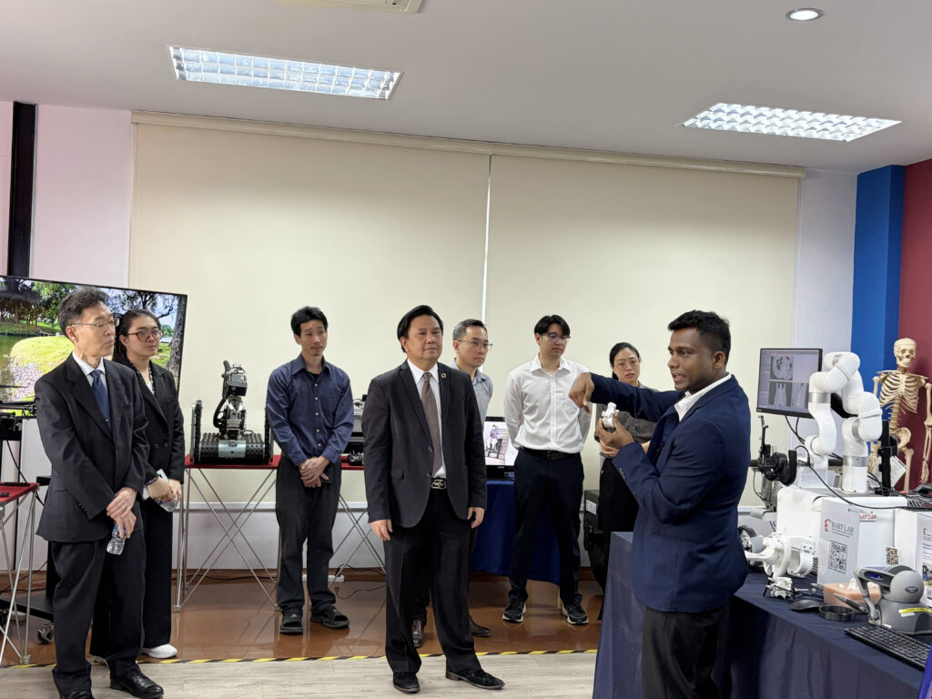 นอกจากนี้ คณะได้เข้าเยี่ยมชมห้องปฏิบัติการใน อาคาร 2 คณะวิศวกรรมศาสตร์ ได้แก่ Center for Biomedical and Robotics Technology (BART LAB) โดย รศ. ดร.จักรกฤษณ์ ศุทธากรณ์ Smart Motion Analysis and Rehabilitation Technology Laboratory (SMART LAB) โดย รศ. ดร.วรากร เจริญสุข และ Brain–Computer Interface Laboratory (BCI LAB) โดย ดร.เจษฎา อานิล ซึ่งสะท้อนศักยภาพด้านการบูรณาการองค์ความรู้ทางวิศวกรรม หุ่นยนต์ ระบบอัจฉริยะ และปัญญาประดิษฐ์ เพื่อการฟื้นฟูสมรรถภาพ การวิเคราะห์การเคลื่อนไหวของมนุษย์ และการพัฒนาเทคโนโลยี Brain–Computer Interface สำหรับการแพทย์และการดูแลสุขภาพในอนาคต ทั้งนี้ ภายหลังการเยี่ยมชมได้มีการสรุปภาพรวมของห้องปฏิบัติการและแลกเปลี่ยนความคิดเห็นเกี่ยวกับทิศทางความร่วมมือทางวิชาการและการวิจัยร่วมกันในอนาคต