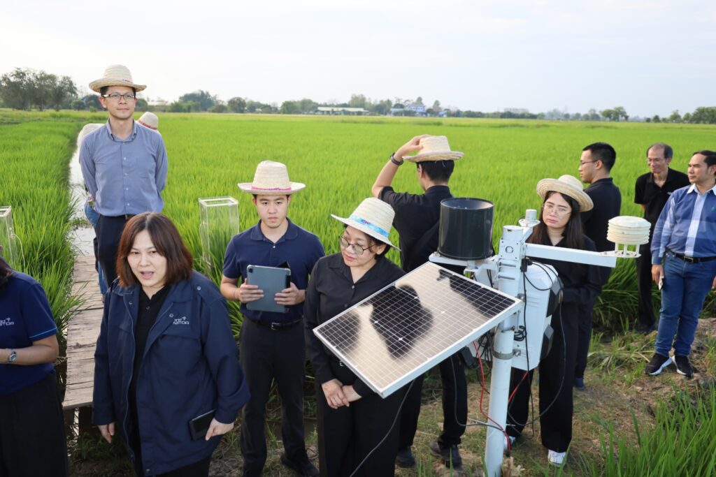จากนั้น คณะฯ ได้เข้าเยี่ยมชมที่ บริษัท ทรี โอ้ส์ ทรี อะกริคัลเจอร์ จำกัด ซึ่งได้รับซื้อข้าวเหนียวพันธุ์ “หอมนาคา” มาแปรรูปเป็นข้าวคั่วและน้ำจิ้มแจ่วส่งออกไปยังตลาดต่างประเทศ ทั้งสหรัฐอเมริกาและจีน ก่อนปิดท้ายกิจกรรมวันแรกด้วยการลงพื้นที่แปลงนาอำเภอสามง่าม เพื่อเยี่ยมชมแปลงนาคาร์บอนต่ำ ที่มีการจัดการน้ำแบบเปียกสลับแห้ง (AWD) การใช้เทคโนโลยีเซนเซอร์อัจฉริยะ IoT และข้าวพันธุ์ทนทานสภาวะโลกร้อนมาใช้เพิ่มประสิทธิภาพการผลิต ซึ่งเป็นการตอกย้ำภาพลักษณ์เกษตรกรไทยยุคใหม่ที่พร้อมปรับตัวรับความท้าทายจากสภาวะโลกร้อนอย่างยั่งยืน