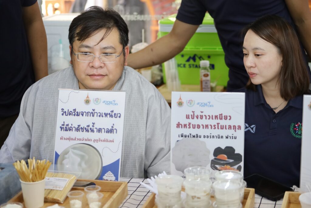 นอกจากนี้ คณะผู้แทนได้เข้าเยี่ยมชมการแปรรูปข้าวสู่นวัตกรรมอาหารมูลค่าสูงจาก มหาวิทยาลัยเทคโนโลยีราชมงคลล้านนา นำโดย อ.สุรพล ใจวงศ์ษา และ อ.กัญญณัช ศิริธัญญา ได้แก่ วิปครีมจากข้าว ไรซ์โยเกิร์ต กราโนล่า (Granola) ข้าวก่ำพอง และแป้งข้าวเหนียวสำหรับอาหารโมเลกุล รวมถึงร่วมชมนิทรรศการแสดงนวัตกรรมเด่น เช่น ระบบ RiceFit สำหรับแนะนำพันธุ์ข้าวที่เหมาะสม แอปพลิเคชัน Linebot ตรวจวินิจฉัยโรคข้าว และเทคโนโลยีพันธุ์ข้าวพร้อมใช้จากทีมวิจัย สวทช. ได้แก่ พันธุ์หอมชลสิทธิ์ 2 พันธุ์ไบโอเทค 1 พันธุ์หอมสยาม พันธุ์หอมสยาม 2 และพันธุ์หอมนาคา ซึ่งมุ่งเน้นการเพิ่มประสิทธิภาพการผลิตและสร้างมูลค่าเพิ่มผ่านผลิตภัณฑ์แปรรูปนวัตกรรม