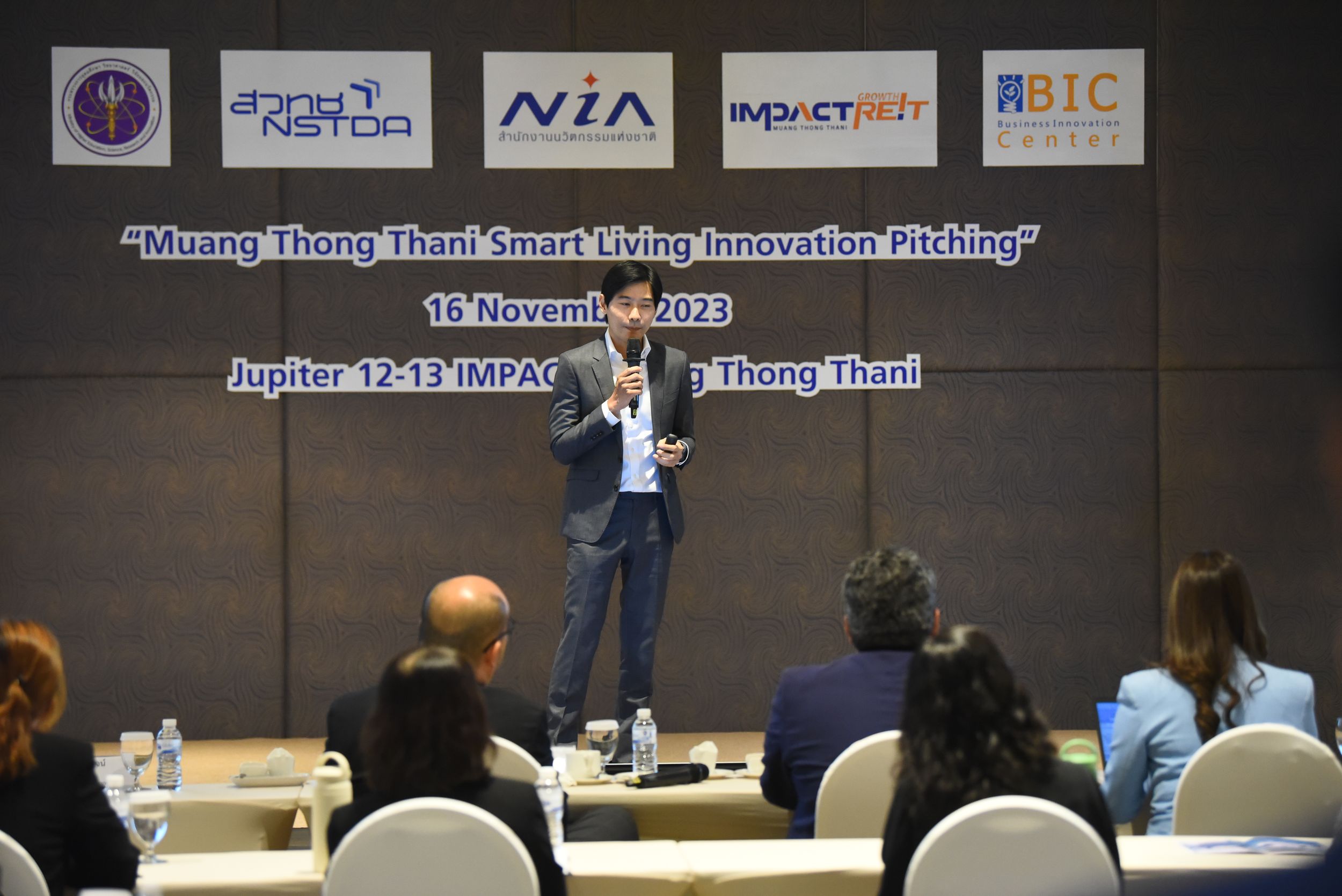 นำโดย ดร.อดิสร เตือนตรานนท์ ผู้ช่วยผู้อำนวยการ สวทช. กล่าวเปิดงาน “Muang Thong Thani Smart Living Innovation Pitching” โดยมีนายพอลล์ กาญจนพาสน์ ประธานเจ้าหน้าที่บริหาร บริษัท อิมแพ็ค เอ็กซิบิชั่น แมเนจเม้นท์ จำกัด กล่าวต้อนรับผู้เข้าร่วมงานประกอบด้วยนักลงทุน นักวิจัย Startup ที่เข้าร่วมรับฟังการนำเสนอผลงานนวัตกรรมเพื่อพัฒนาเมืองทองเป็นเมืองน่าอยู่ และยั่งยืน