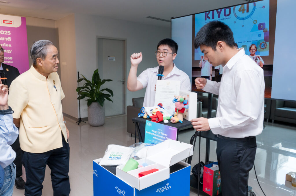 ภายในงานแถลงข่าวได้มีการจัดแสดงผลงานเด่นที่ได้รับรางวัลจากงาน i-CREATe 2024 ณ นครเซี่ยงไฮ้ ประเทศสาธารณรัฐประชาชนจีน อาทิ ผลงาน Happy CP Gloves: Smiling Solutions for children with cerebral ถุงมือนวัตกรรมสำหรับเด็กที่มีภาวะสมองพิการ (Cerebral Palsy) ช่วยลดอาการเกร็งของมือที่อาจทำให้เล็บจิกฝ่ามือจนเกิดบาดแผล และป้องกันกระดูกนิ้วและข้อมือบิดงอ โดย โรงเรียนสาธิตจุฬาลงกรณ์มหาวิทยาลัย ฝ่ายมัธยม โรงเรียนสาธิตมหาวิทยาลัยศรีนครินทรวิโรฒ ปทุมวัน และโรงเรียนเตรียมอุดมศึกษา ได้รับรางวัลเหรียญทอง ชนะเลิศอันดับที่ 1 ประเภทการออกแบบ (Design) และผลงาน ALL Wheelchair: AI Motion Tracking System for Monitoring Health and Activity ระบบติดตามการเคลื่อนไหวด้วย AI พร้อมเกมที่ควบคุมด้วยการเคลื่อนไหวสำหรับผู้ใช้งานวีลแชร์ เพื่อส่งเสริมการทำกิจกรรมทางกายและติดตามสุขภาพ โดย คณะสหเวชศาสตร์ และ คณะวิศวกรรมศาสตร์ มหาวิทยาลัยธรรมศาสตร์ ได้รางวัลเหรียญเงิน ชนะเลิศอันดับที่ 2 ประเภทเทคโนโลยี (Technology)