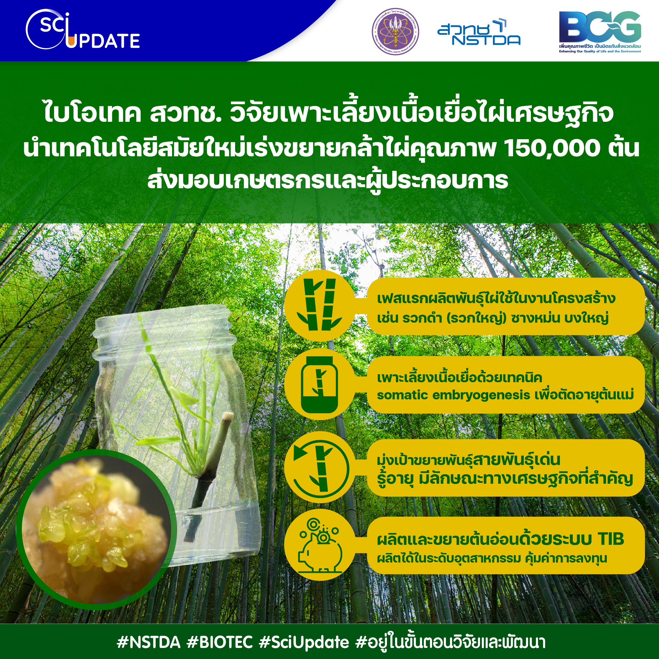 ไบโอเทค สวทช. ‘เพาะเลี้ยงเนื้อเยื่อไผ่เศรษฐกิจ 150,000 ต้น’ มุ่งส่งมอบไผ่พันธุ์ดี ไม่ติดอายุแม่