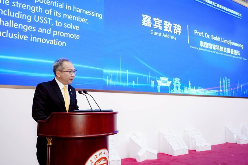 ในฐานะพันธมิตรผู้ร่วมก่อตั้ง ศาสตราจารย์ ดร.ชูกิจ ลิมปิจำนงค์ ผู้อำนวยการ สวทช. ได้ร่วมกล่าวปาฐกถาในพิธีเปิดการประชุมและพิธีเปิดห้องปฏิบัติการร่วมด้านวิศวกรรมฟื้นฟูสมรรถภาพอัจฉริยะจีน-ไทย ซึ่งเป็นไปตามบันทึกความร่วมมือระหว่าง สวทช. และ USST เมื่อเดือนกุมภาพันธ์ 2568 เพื่อร่วมกันขับเคลื่อนและส่งเสริมการวิจัยด้านวิศวกรรมฟื้นฟูสมรรถภาพอัจฉริยะ (Intelligent Rehabilitation Engineering) มุ่งเน้นการะการแลกเปลี่ยนทางเทคนิคในด้านการฟื้นฟูสมรรถภาพ การดูแลผู้สูงอายุ และหุ่นยนต์ (rehabilitation, elderly care, and robotics) เพื่อขับเคลื่อนการเปลี่ยนผ่านและการใช้ประโยชน์จากผลงานวิจัยด้านสุขภาพและสุขภาวะ เตรียมความพร้อมสำหรับการเข้าสู่สังคมผู้สูงวัย