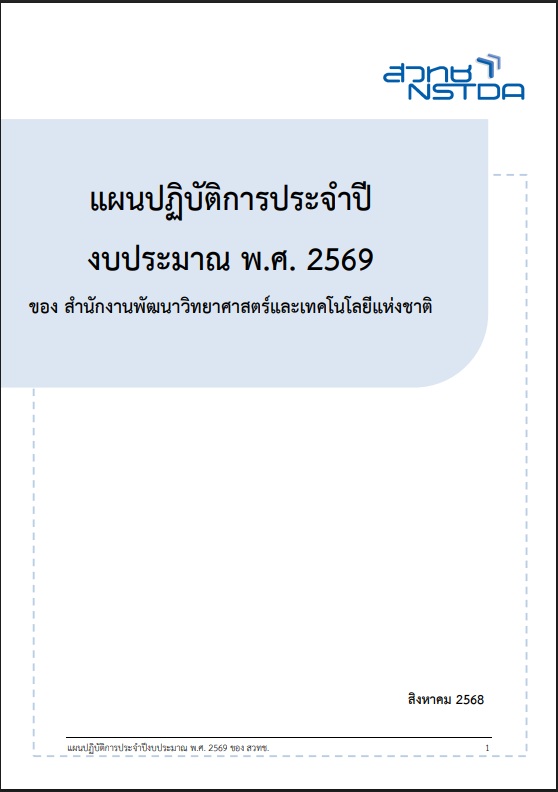 สำนักงานพัฒนาวิทยาศาสตร์และเทคโนโลยีแห่งชาติ (สวทช.) เป็นหน่วยงานของรัฐที่จัดตั้งขึ้นเพื่อศึกษาวิจัยและพัฒนาทางด้านวิทยาศาสตร์ และเทคโนโลยีเพื่อการพัฒนาประเทศไทย ไม่ได้มีวัตถุประสงค์เพื่อแสวงหากำไร หากท่านพบว่ามีข้อมูลใดๆ ที่ละเมิดทรัพย์สินทางปัญญาปรากฏอยู่ในเว็บไซต์ของสำนักงานพัฒนาวิทยาศาสตร์และเทคโนโลยีแห่งชาติ (สวทช.) โปรดแจ้งให้ทราบเพื่อดำเนินการแก้ปัญหาดังกล่าวโดยเร็วที่สุดต่อไป