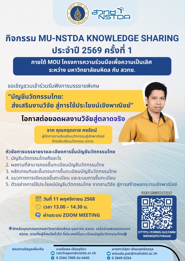 กิจกรรม MU-NSTDA Knowledge Sharing ประจำปี 2569 ครั้งที่ 1