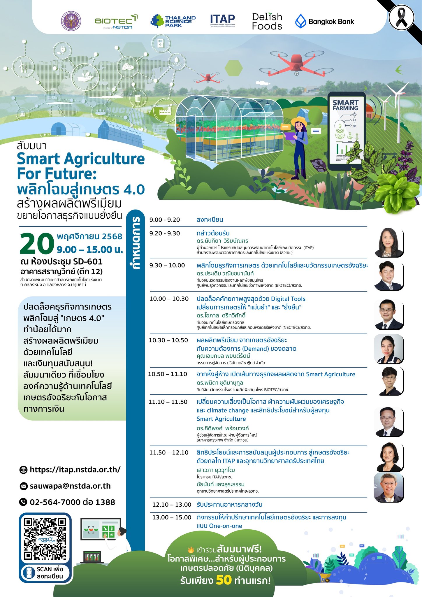 สัมมนา “Smart Agriculture For Future: พลิกโฉมสู่เกษตร 4.0 สร้างผลผลิตพรีเมียม ขยายโอกาส ธุรกิจแบบยั่งยืน”