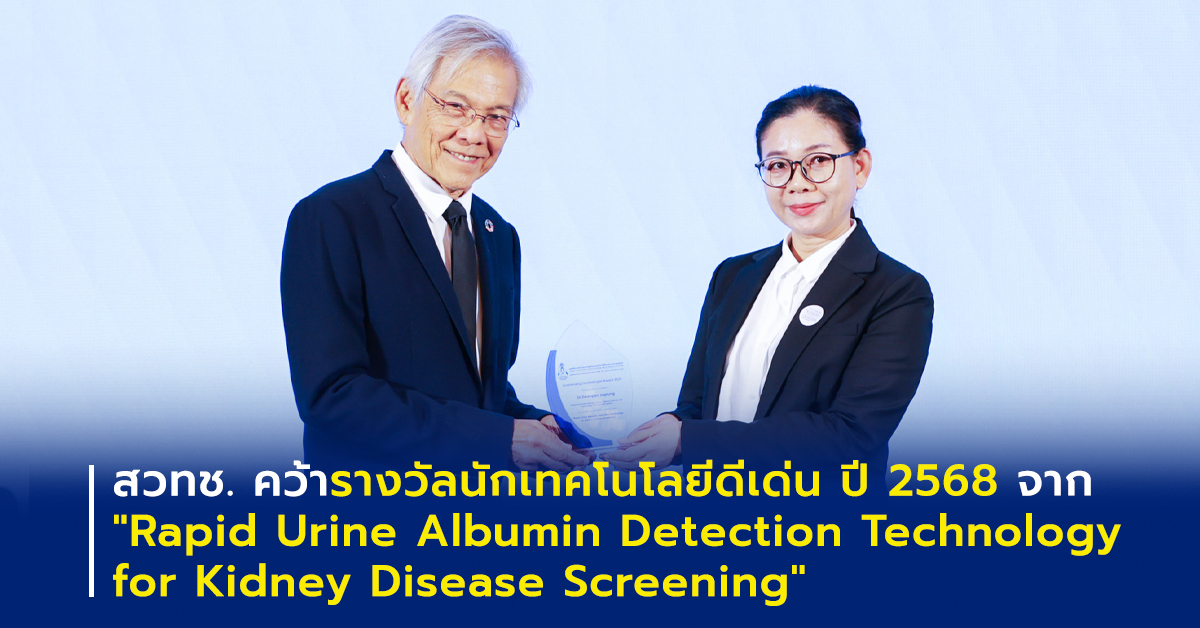 สวทช. คว้ารางวัลผู้เข้ารอบสุดท้ายนักเทคโนโลยีดีเด่น ประจำปี 2568 จากผลงาน “Rapid Urine Albumin Detection Technology for Kidney Disease Screening”