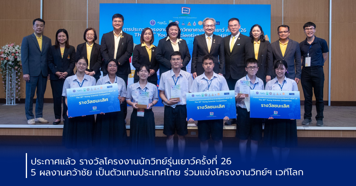 ประกาศแล้ว รางวัลโครงงานนักวิทย์รุ่นเยาว์ครั้งที่ 26 ได้ 5 ผลงานคว้าชัย เป็นตัวแทนประเทศไทย ร่วมแข่งโครงงานวิทย์ฯ เวทีโลก