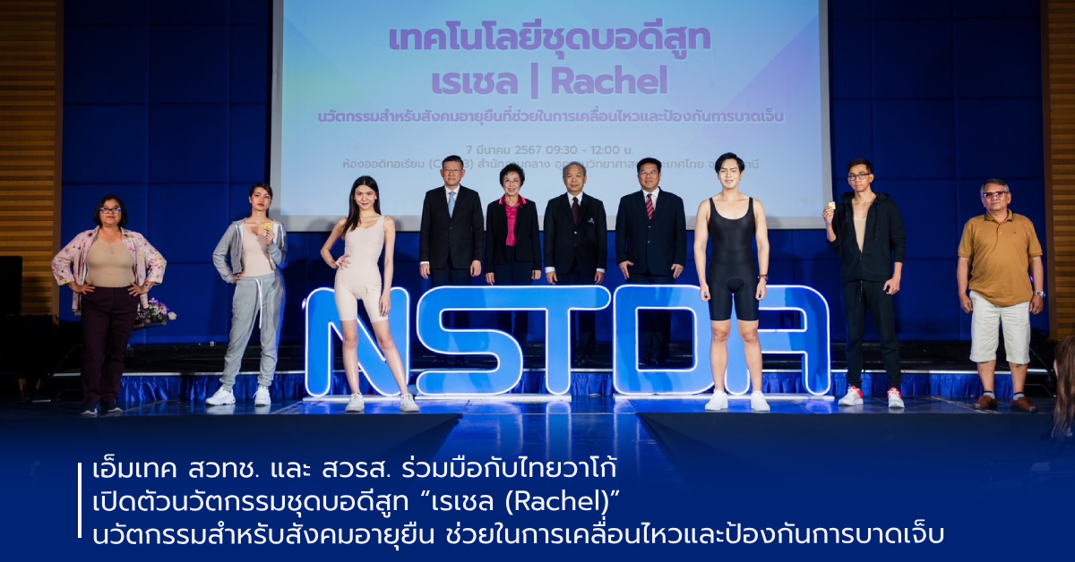 เอ็มเทค สวทช. และ สวรส. ร่วมมือกับไทยวาโก้ เปิดตัวนวัตกรรมชุดบอดีสูท “เรเชล (Rachel)” นวัตกรรมสำหรับสังคมอายุยืน ช่วยในการเคลื่อนไหวและป้องกันการบาดเจ็บ