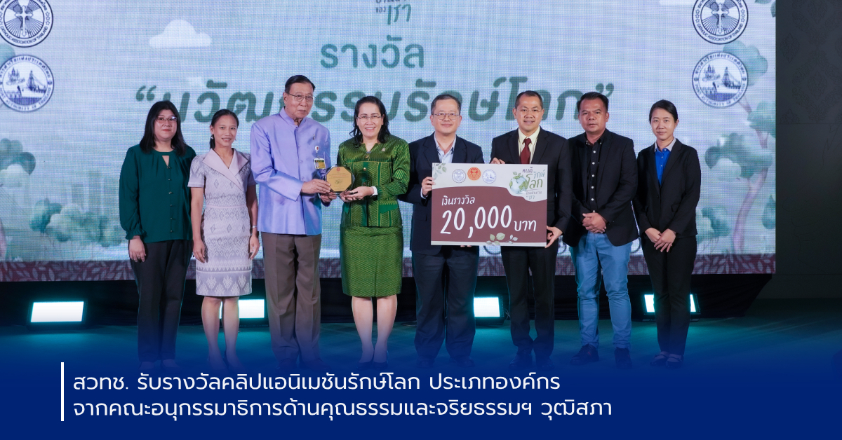 สวทช. รับรางวัลคลิปแอนิเมชันรักษ์โลก ประเภทองค์กร จากคณะอนุกรรมาธิการด้านคุณธรรมและจริยธรรมฯ วุฒิสภา