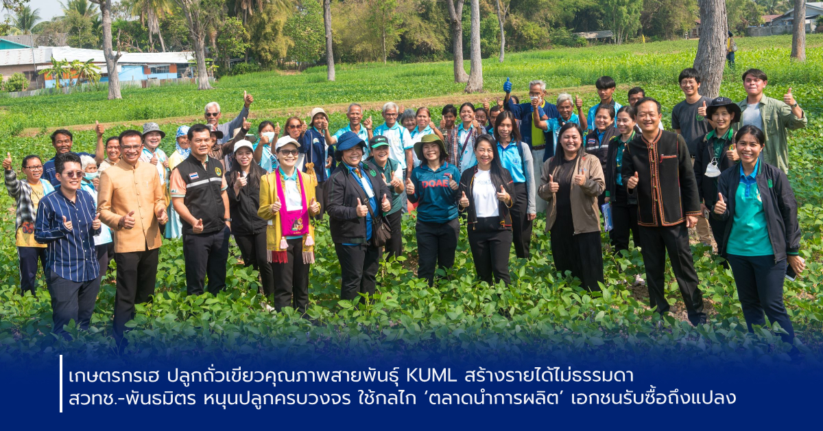เกษตรกรเฮ ปลูกถั่วเขียวคุณภาพสายพันธุ์ KUML สร้างรายได้ไม่ธรรมดา สวทช.-พันธมิตร หนุนปลูกครบวงจร ใช้กลไก ‘ตลาดนำการผลิต’ เอกชนรับซื้อถึงแปลง