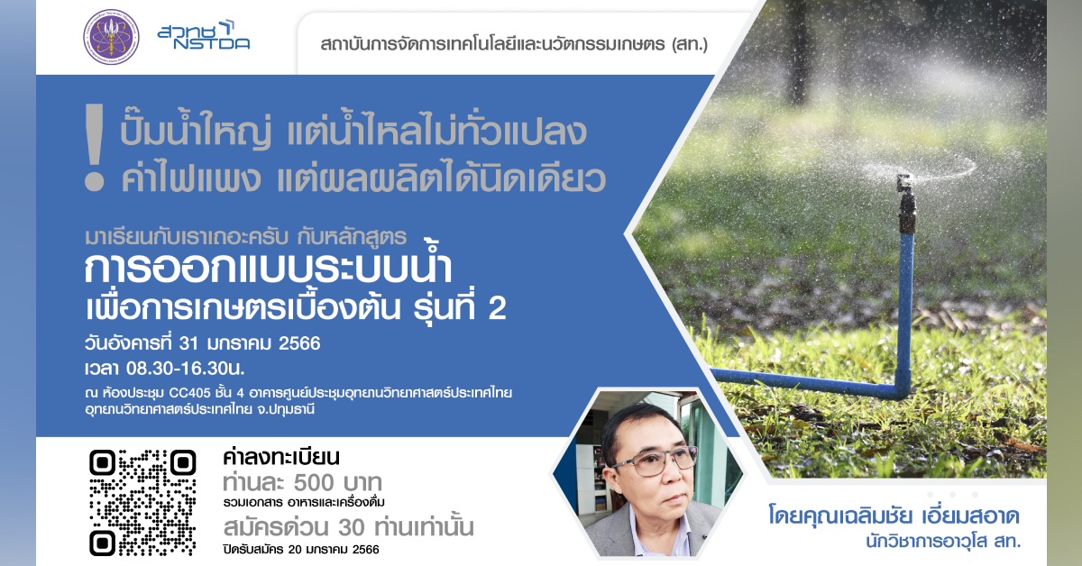 สวทช. จัดอบรม “การออกแบบระบบน้ำเพื่อการเกษตรเบื้องต้น รุ่น 2”
