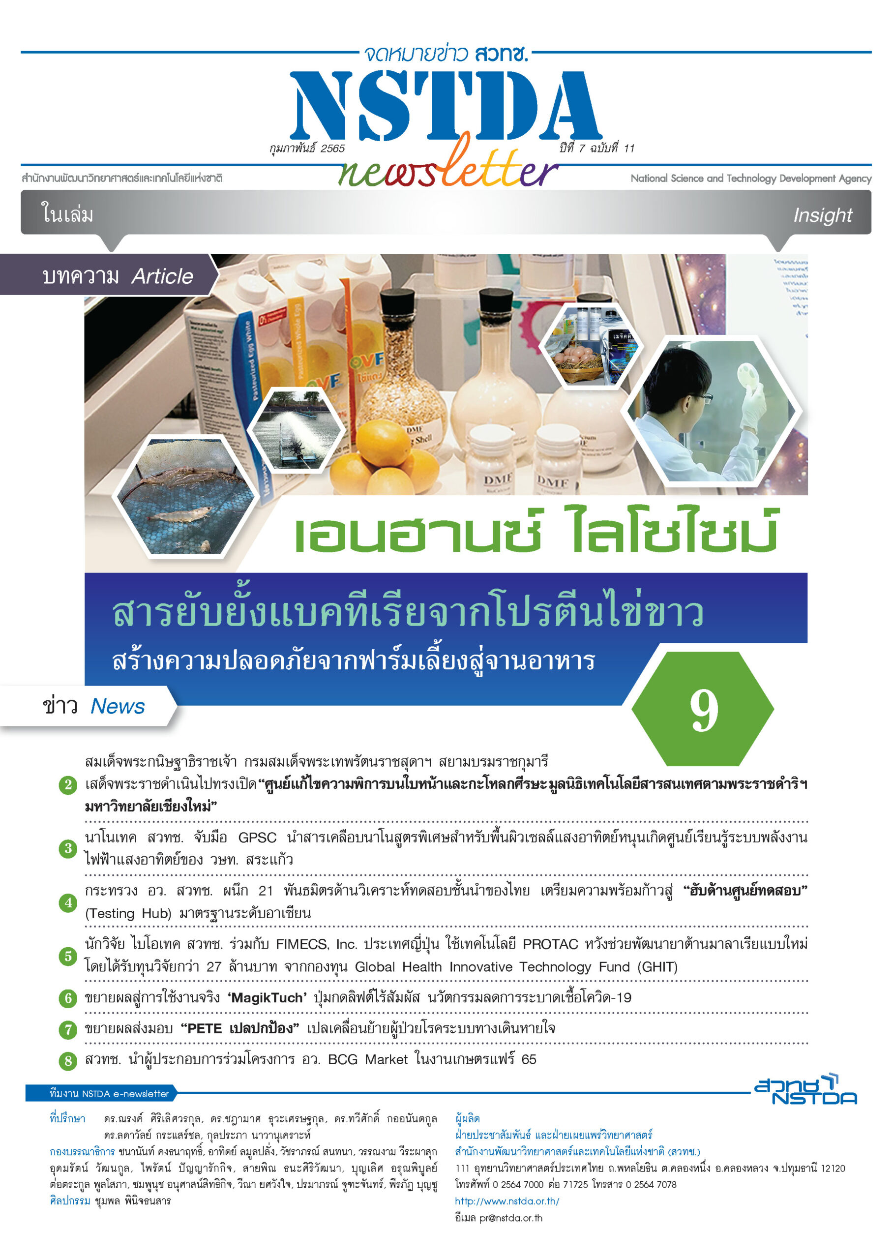 จดหมายข่าว สวทช. ปีที่ 7 ฉบับที่ 11 ประจำเดือนกุมภาพันธ์ 2565
