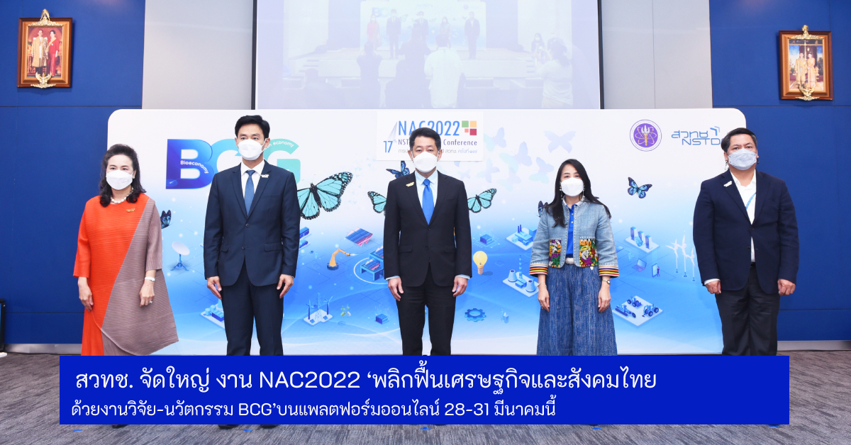 สวทช. จัดใหญ่ งาน NAC2022 ‘พลิกฟื้นเศรษฐกิจและสังคมไทย ด้วยงานวิจัย-นวัตกรรม BCG’บนแพลตฟอร์มออนไลน์ 28-31 มีนาคมนี้