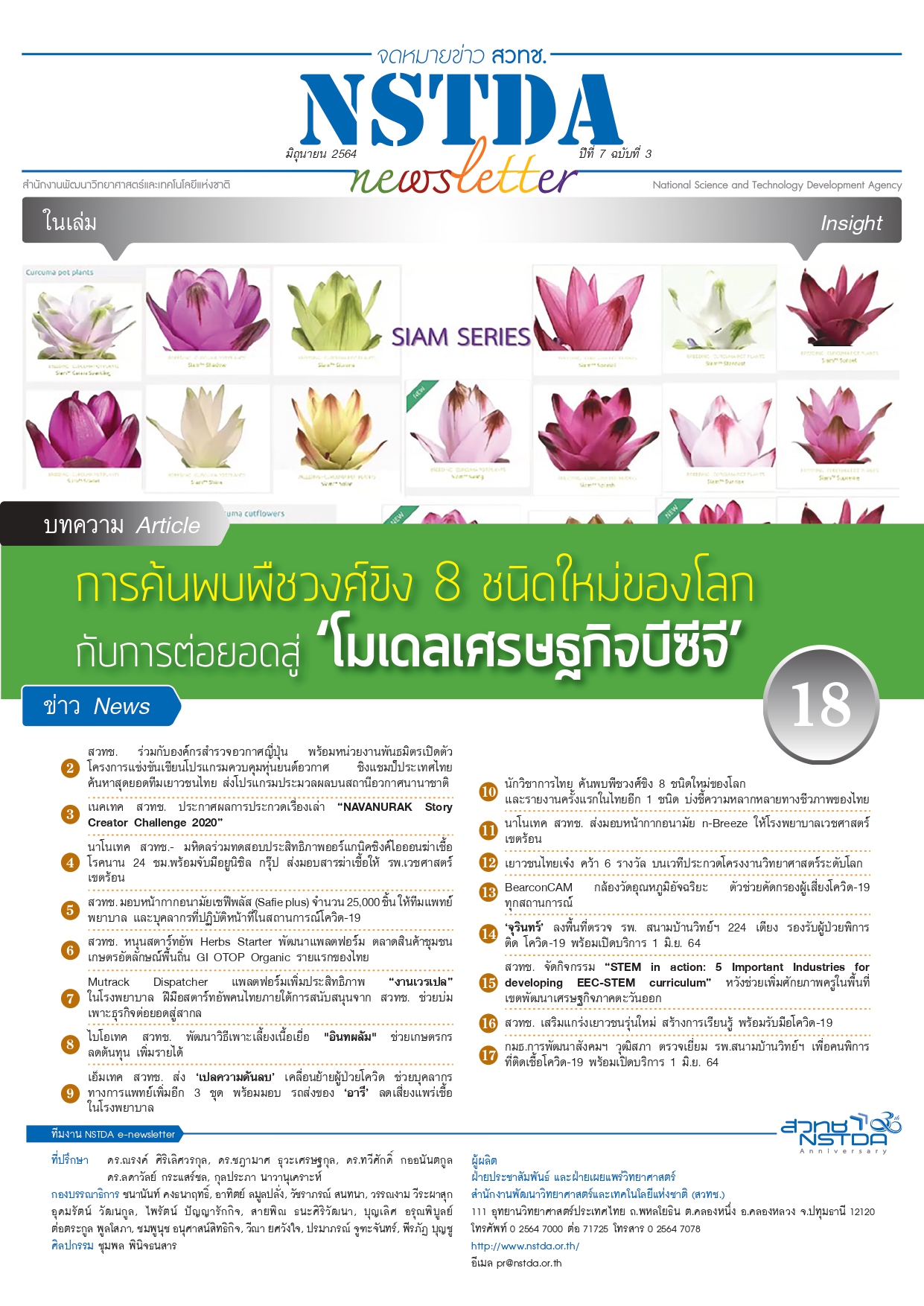 จดหมายข่าว สวทช. ปีที่ 7 ฉบับที่ 3 ประจำเดือนมิถุนายน 2564