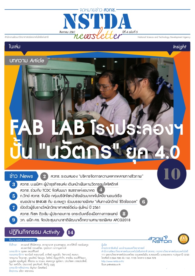 จดหมายข่าว สวทช. ปีที่ 4 ฉ.5 – FAB LAB โรงประลองฯ ปั้น “นวัตกร” ยุค 4.0