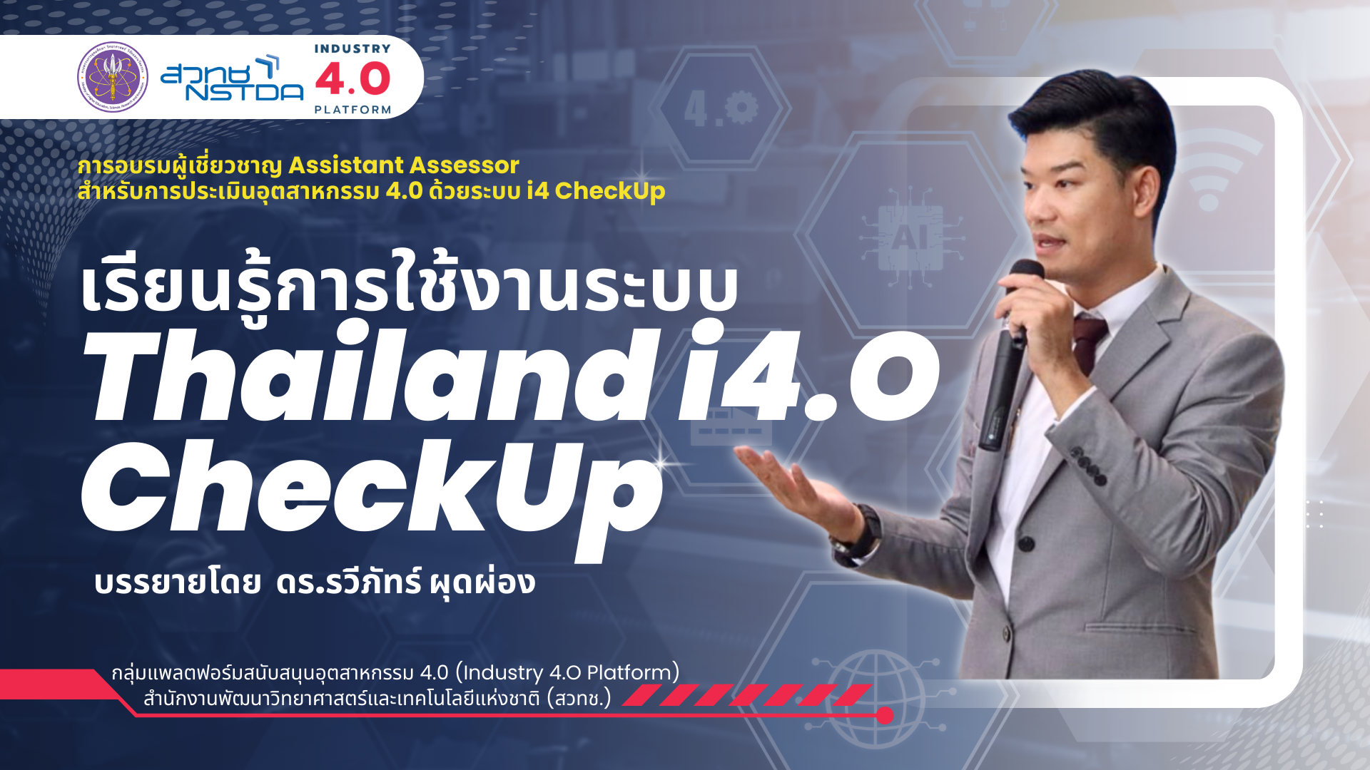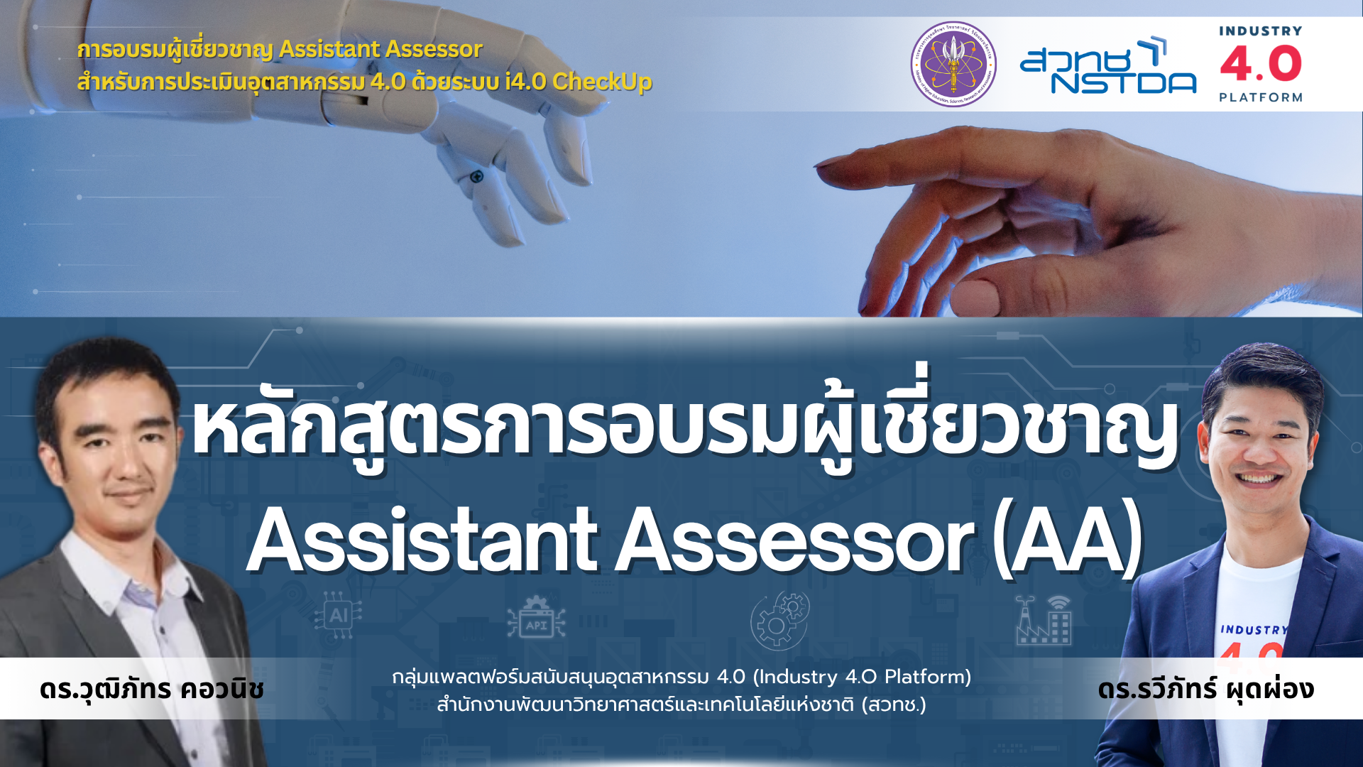 หลักสูตรนี้จัดทำขึ้นภายใต้ความร่วมมือกับโครงการของ สวทช. (NSTDA) เพื่อเตรียมบุคลากรให้มีความรู้และทักษะในการประเมินศักยภาพโรงงานอุตสาหกรรมและให้คำแนะนำเชิงเทคนิคเพื่อขับเคลื่อนสู่การเป็นอุตสาหกรรม 4.0 โดยเน้นการมีส่วนร่วมของผู้เข้าอบรมในการเป็นผู้ช่วยผู้ประเมิน (Assistant Assessor – AA) หรือที่ปรึกษาด้านการผลิตดิจิทัล (Digital Manufacturing Advisor – DMA)