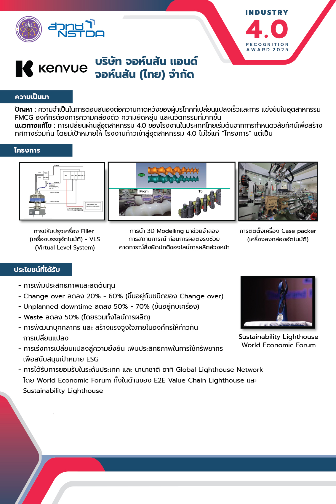 - การได้รับการยอมรับในระดับประเทศ และ นานาชาติ อาทิ Global Lighthouse Network โดย World Economic Forum ทั้งในด้านของ E2E Value Chain Lighthouse และ Sustainability Lighthouse