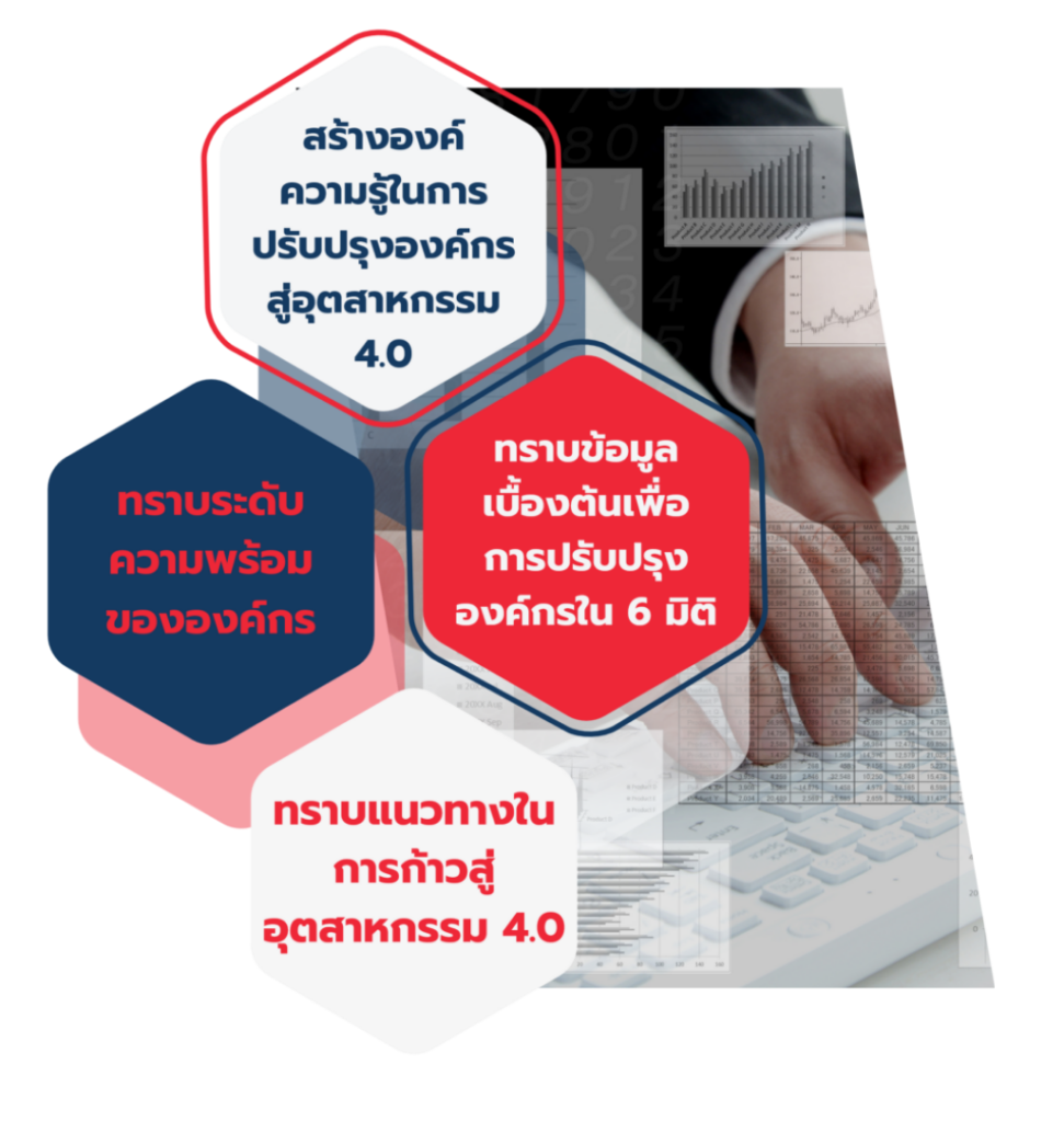 - Assessment Toolset เครื่องมือวิเคราะห์ข้อมูลที่เชื่อมโยงกับมาตรฐาน Thailand i4.0 Index ช่วยให้การสรุปผลการประเมินเป็นไปอย่างมีระบบและเป็นสากล
