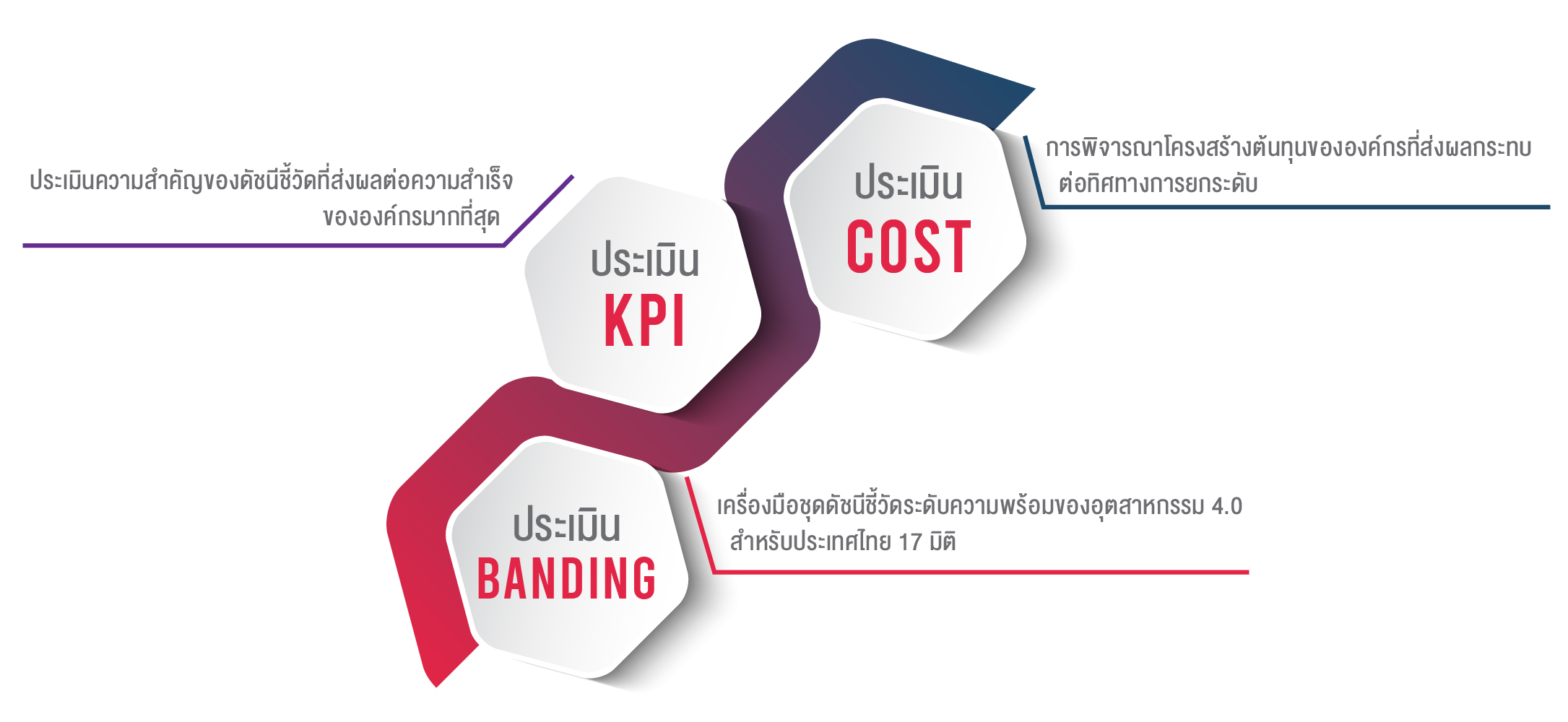 หลังจากวันประเมินประมาณ 2 สัปดาห์ ผู้ประเมินจะสรุปผลการประเมินให้แก่ผู้บริหารของโรงงานได้รับทราบ พร้อมทั้งให้คำแนะนำในการยกระดับความพร้อมด้านที่ สำคัญก่อน และส่งมอบรายงานในรูปแบบตารางแสดงผลการประเมินในแต่ละมิติโดยละเอียด พร้อมกราฟสรุปที่ให้ข้อมูลเทียบกับค่าเฉลียในอุตสาหกรรมของผู้ประกอบการ ที่เข้ารับการประเมินด้วย