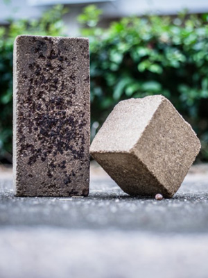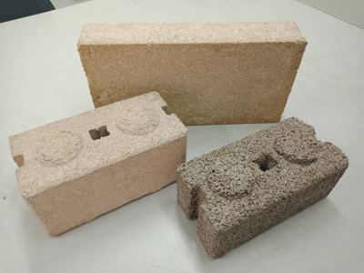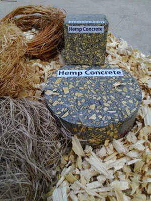 - เฮมพ์คอนกรีตบล๊อกจากแกนเฮมพ์ผสมเถ้าถ่านหิน มีคุณสมบัติด้านกำลัง และความหนาแน่นปานกลางช่วยลดน้ำหนักของโครงสร้างหลัก มีความเป็นฉนวนในตัว คลายความร้อนได้ดี เหมาะสำหรับเป็นวัสดุโครงสร้างประเภทรับน้ำหนัก