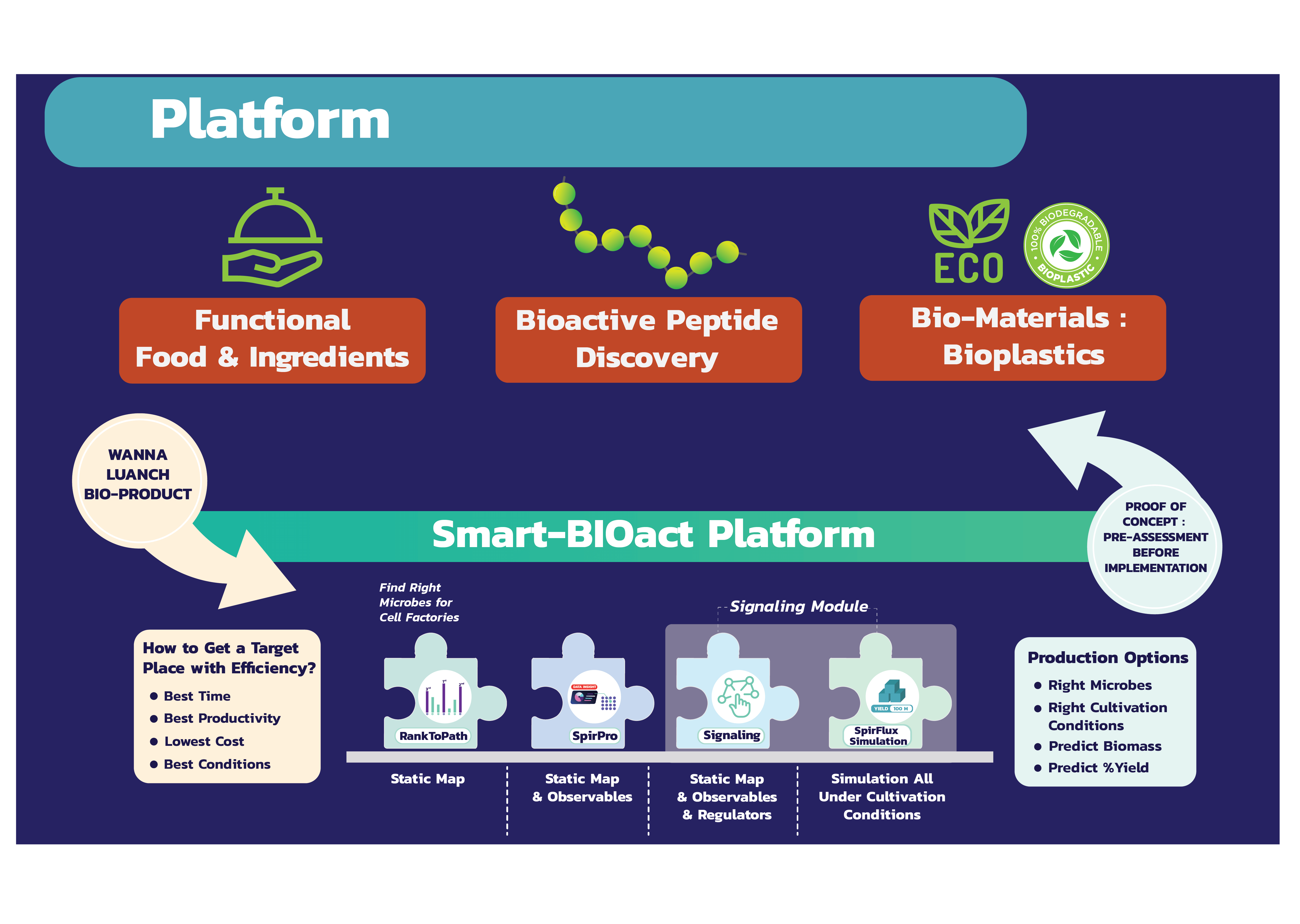 Smart-BIOact ใช้ข้อมูลในระดับ Big Data ของสิ่งมีชีวิต เพื่อวิเคราะห์-ทำนายความสามารถในการสร้างสารชีวภัณฑ์ (Bio-Product) หรือสารออกฤทธิ์