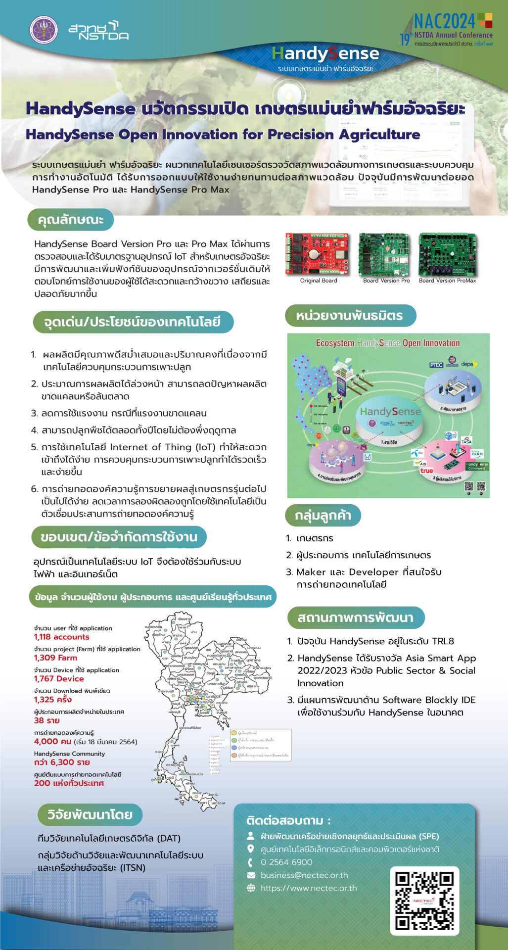 ระบบเกษตรแม่นยำ ฟาร์มอัจฉริยะ ผนวกเทคโนโลยีเซนเซอร์ตรวจวัดสภาพแวดล้อมทางการเกษตรและระบบควบคุมการทำงานอัตโนมัติได้รับการออกแบบให้ใช้งานง่ายทนทานต่อสภาพแวดล้อม ปัจจุบันมีการพัฒนาต่อยอด HandySense Pro และ HandySense Pro Max ซึ่งมีการเพิ่มส่วนคุณสมบัติ และปัจจุบันผ่านการทดสอบระดับมาตฐานอุตสหกรรม