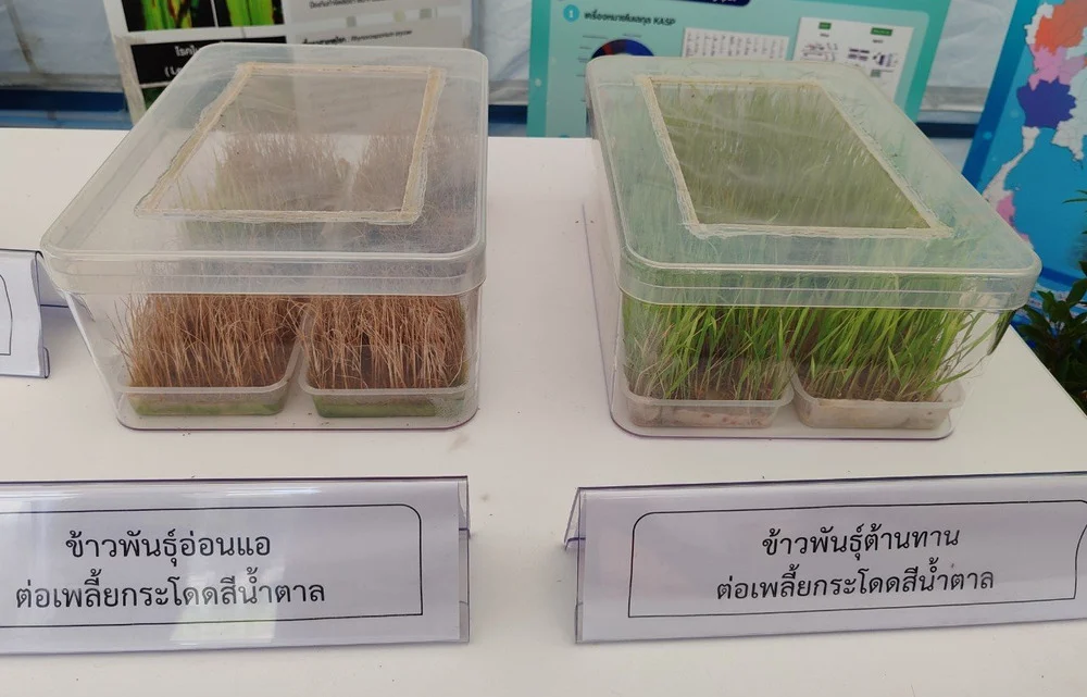 - การเพิ่มความต้านทานโรคและแมลง: การพัฒนาพันธุ์ข้าวที่ทนทานต่อโรคและแมลงศัตรูพืช เช่น โรคใบไหม้ ข้าวกล้าตาย หรือแมลงที่ทำลายต้นข้าว ทำให้เกษตรกรไม่จำเป็นต้องใช้สารเคมีมากเกินไป ซึ่งช่วยลดค่าใช้จ่ายและผลกระทบต่อสิ่งแวดล้อม