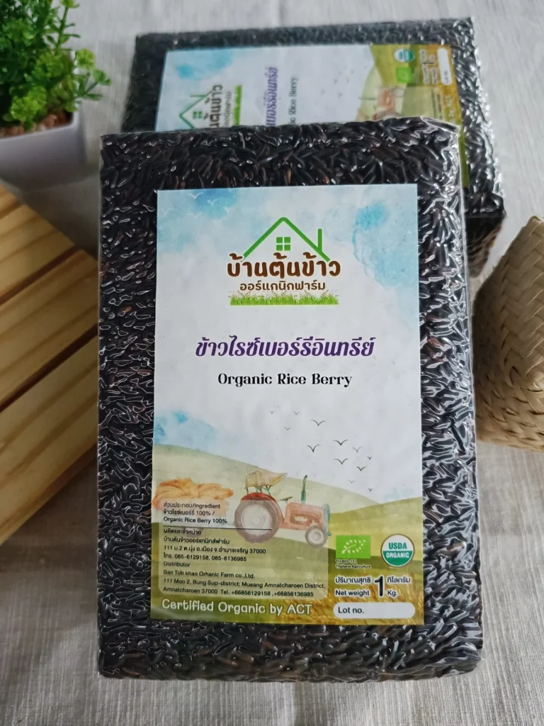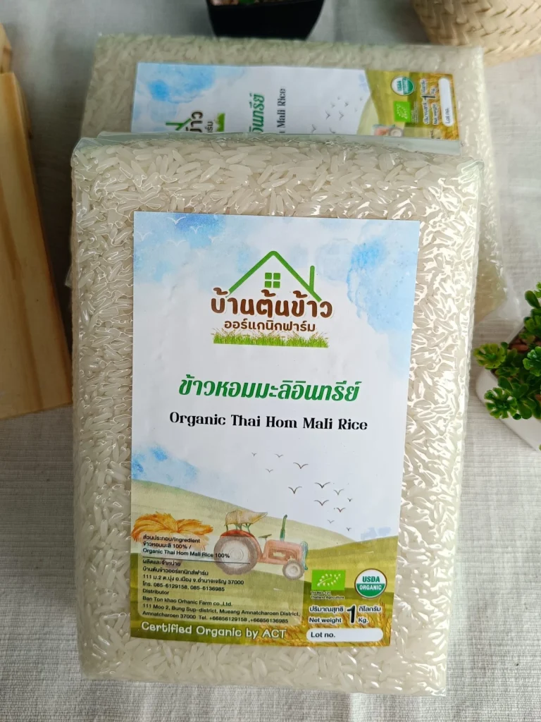 | ผลิตภัณฑ์ : ถั่วเขียวเคยูเอ็มแอล (KUML) ข้าวอินทรีย์ และสินค้าเกษตรอินทรีย์ บริษัท บ้านต้นข้าวออแกนิกส์ฟาร์ม จำกัด คือ ผู้ผลิตข้าวอินทรีย์ และผลผลิตเกษตรอินทรีย์ ตามมาตรฐาน EU, COR ความร่วมมือ : สถาบันการจัดการเทคโนโลยีและนวัตกรรมเกษตร (สท.) |