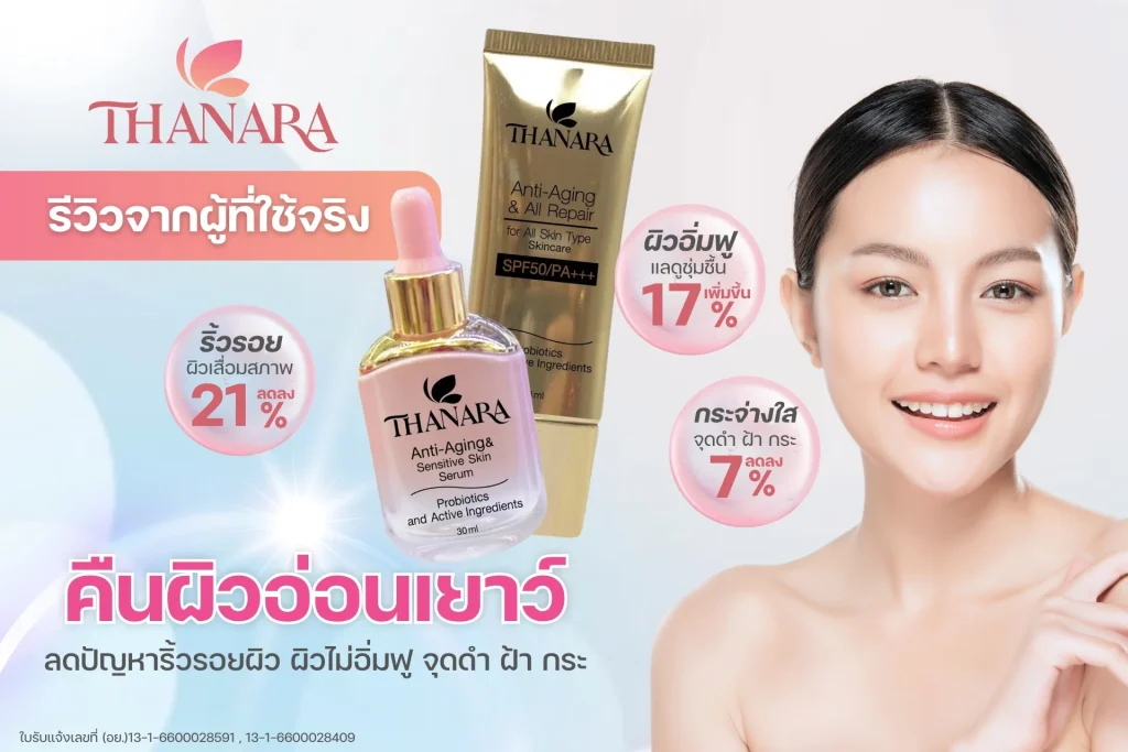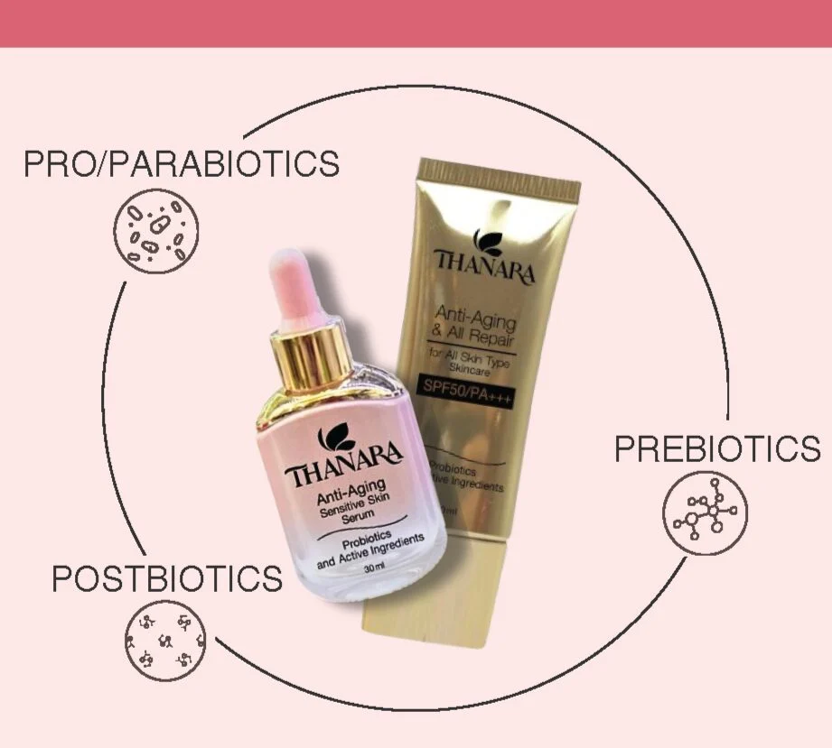 | ผลิตภัณฑ์ : นวัตกรรมความงามผสานไมโครไบโอมฟื้นฟูสุขภาพผิวด้วย 4P-Biotics สูตรเฉพาะจากออล-ดีเอ็นเอ คณะวิทยาศาสตร์ จุฬา THANARA Anti-Aging & Sensitive Skin Serum ซีรัมบำรุงผิวสูตรเข้มข้นที่ช่วยฟื้นฟูไมโครไบโอมบนผิวหน้า ลดการอักเสบ เพิ่มความชุ่มชื้น และปรับสมดุลให้ผิวแข็งแรง THANARA Anti-Aging & All Repair for All Skin Type Skincare SPF50/PA+++ โลชันกันแดดที่รวมไมโครไบโอมกับคุณสมบัติการปกป้องจากรังสียูวีเพื่อการฟื้นฟูผิวในขั้นตอนเดียว เหมาะสำหรับทุกสภาพผิว AL-DNA ชุดตรวจ HydroZitLa |