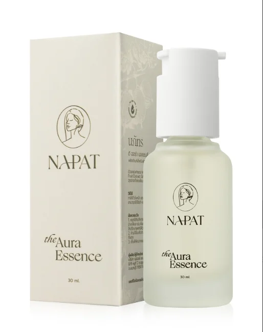 * Aura Essence เอสเซนส์เนื้อบางเบา เป็นองค์ประกอบเสริมสุดท้ายที่ใช้สารสกัดจากมะขามป้อม แก่นมะหาด และใบหม่อน