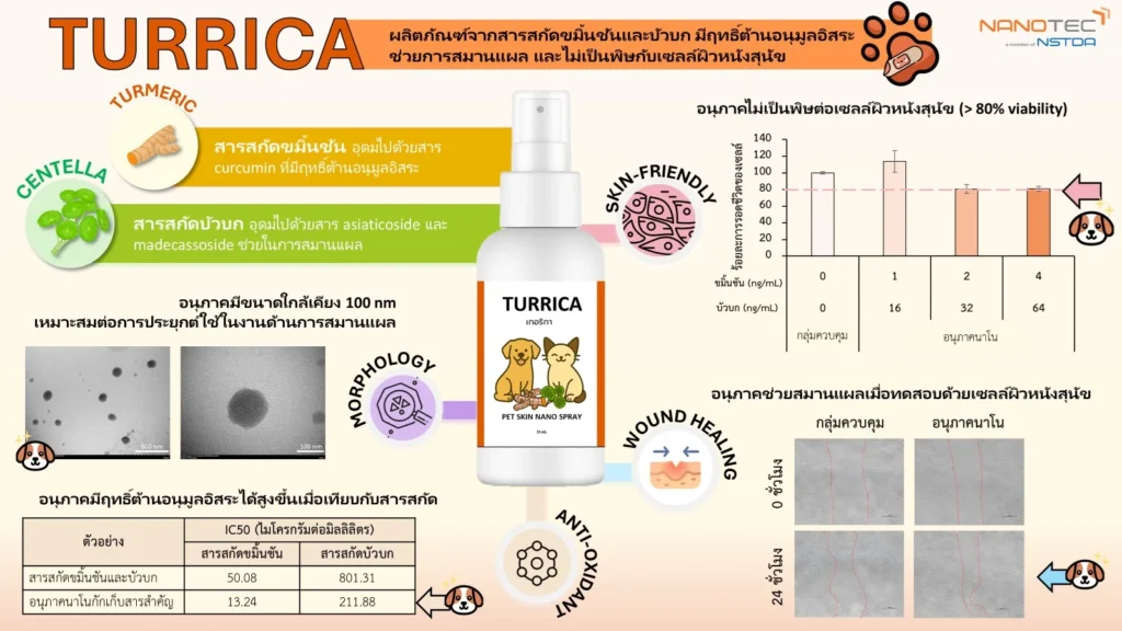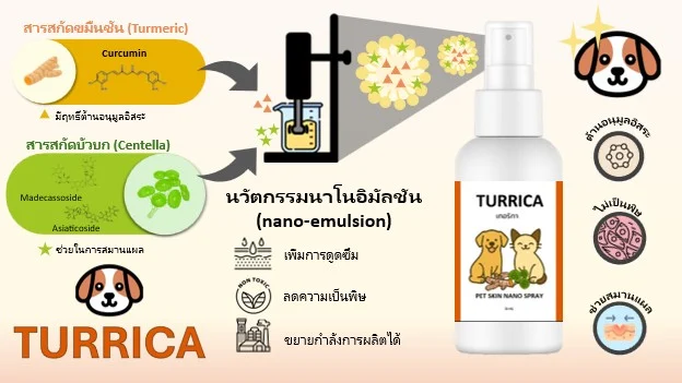 ดังนั้น การประยุกต์ใช้เทคโนโลยีนาโนอิมัลชันกับสารสกัดสมุนไพรบัวบกและขมิ้นชัน จึงเป็นแนวทางใหม่ที่ช่วยยกระดับประสิทธิภาพผลิตภัณฑ์สมานแผลสำหรับสัตว์เลี้ยง ให้ปลอดภัยและเห็นผลชัดเจนยิ่งขึ้น