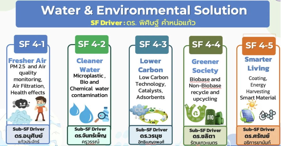 Nanovation for Sustainable Environment นวัตกรรมนาโนเพื่อสิ่งแวดล้อมยั่งยืน1.1 Key: PM 2.5, Water, Net-Zero, SAF, Waste-to-Wealth, Smart Materials