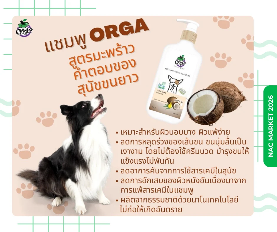 – แชมพูสูตรมะพร้าว สำหรับสุนัขขนยาว
