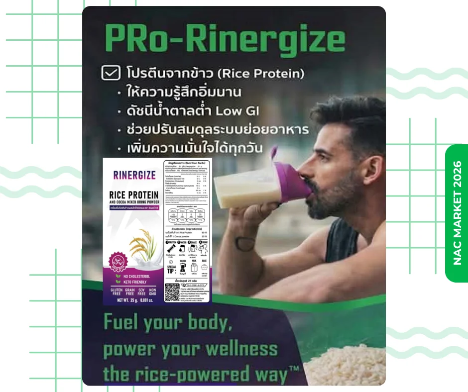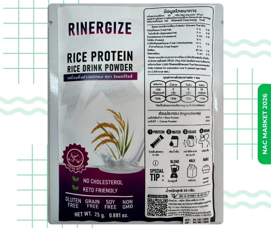 ผลิตภัณฑ์ : เครื่องดื่มโปรตีนผงจากข้าว ตรา ริเนอร์ไจส์