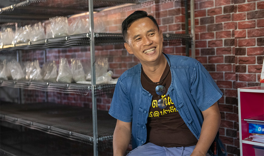 “การผลิตไม่ยาก ทำได้ทุกคนแต่สำคัญที่การดูแลเอาใจใส่ เช่น อุณหภูมิ ความสะอาดในห้อง ที่ทำมามีปนเปื้อนน้อยมาก ผลิตเองมีต้นทุนต่ำ ถุงละ 25 บาท เราเน้นผลิตไว้ใช้เอง แต่ถ้ามีสมาชิกสนใจก็มาเรียนรู้หรือซื้อจากเราได้”