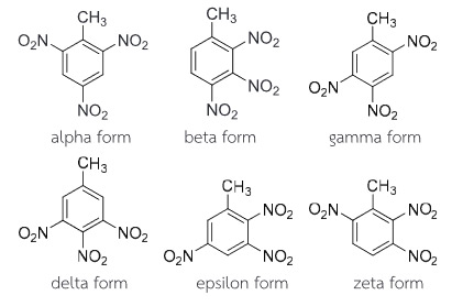 โครงสร้างทางเคมีของไอโซเมอร์ทีเอ็นทีแบบต่าง ๆ