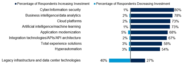ภาพที่ 1. คาดการณ์การเปลี่ยนแปลงการลงทุนทางเทคโนโลยีของ CIO ในปี 2567