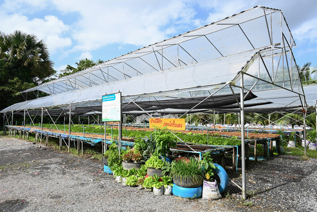 “การมีโรงเรือนเป็นการลงทุน ทำให้เราปลูกผักสลัดได้ ถ้าเราไม่มีจะหนักกว่า คำว่าปลูกได้ คือ ปลูกได้ขาย” ทวี ขาวเรือง ประธานวิสาหกิจชุมชนสวนบุญประสิทธิ์เกษตรเพื่อสุขภาพ ตำบลท่าซอม อำเภอหัวไทร จังหวัดนครศรีธรรมราช บอกถึงความจำเป็นที่ต้องใช้โรงเรือนปลูกผักจากสภาพอากาศฝนแปดแดดสี่ในภาคใต้ และด้วยตำบลท่าซอมอยู่ใกล้ทะเล ในช่วงหน้ามรสุมจึงประสบปัญหาน้ำท่วมขังหากมีน้ำทะเลหนุน ชาวบ้านต้องรับสภาพน้ำท่วมเป็นแรมเดือน ขณะที่ช่วงหน้าแล้งขาดแคลนน้ำเนื่องจากตำบลตั้งอยู่ปลายทางของคลองราชดำริ ส่งผลต่อการทำนา ปลูกผักและสวนผสมผสาน ซึ่งเป็นอาชีพหลักของคนในพื้นที่