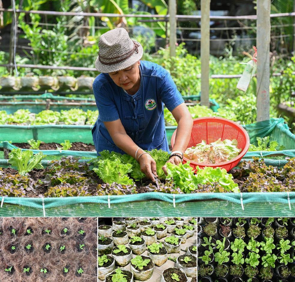 “เราเริ่มต้นจากปลูกผัก แต่เราอยากให้ชุมชนมีฐานเรียนรู้ที่หลากหลาย สมาชิกไม่จำเป็นต้องปลูกผักทุกคน แต่ต้องทำกิจกรรมที่เกี่ยวกับเกษตร เช่น เลี้ยงปลา ไก่ ชันโรง ปลูกมะพร้าวน้ำหอม ส้มโอ ต่อไปคนที่ปลูกผักอยู่ตัวแล้ว อาจไปเลี้ยงปลาเสริมจะได้แลกเปลี่ยนข้อมูลกันได้”