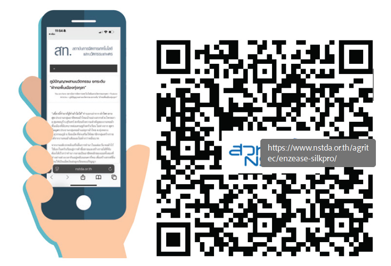 100 เปอร์เซ็นต์ ขณะที่เอนไซม์ซิลค์โปร (SilkPro) ลอกกาวไหมได้ง่าย ทำความสะอาดเส้นไหมได้อย่างมีประสิทธิภาพ ลดเวลาฟอกด้วยสารเคมีได้ 4 เท่า ลดการใช้สารเคมีได้ 50 เปอร์เซ็นต์