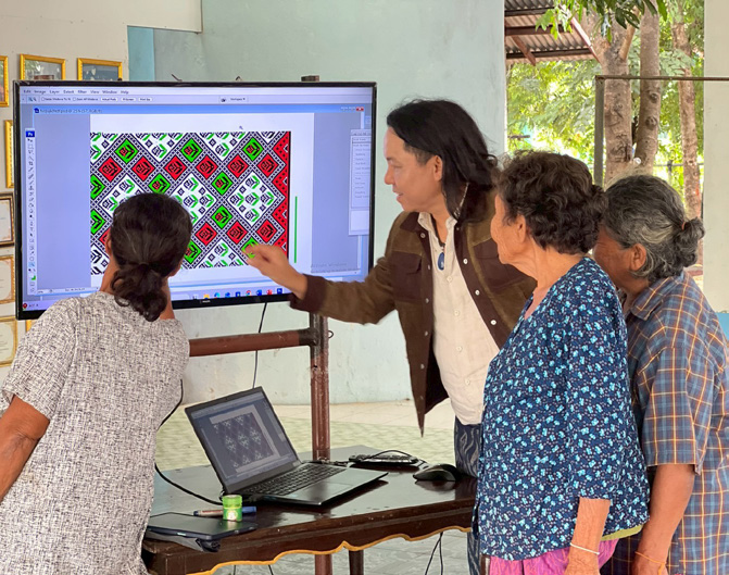 “ลายผ้าเดิมของชุมชนเป็นมรดกที่ไม่มีใครเป็นเจ้าของ ถ้าชุมชนนี้ทำ ชุมชนอื่นก็ทำได้ เป็นลายเดิมซ้ำ ๆ แล้วขายแข่งกันเอง แต่ถ้านำสิ่งที่โดดเด่นของชุมชนมาสร้างเป็นลายอัตลักษณ์ เล่าเรื่องราวของชุมชน เวลาแม่ ๆ นำเสนอลูกค้าจะมีเรื่องเล่า ผ้าชิ้นนั้นมีความน่าสนใจมากขึ้น ลูกค้าเดิมก็มีทางเลือกลายผ้าใหม่ ๆ”