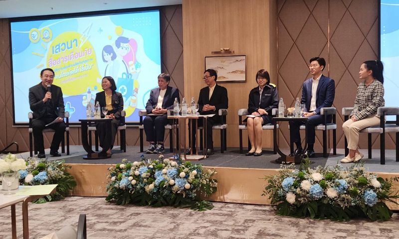 เมื่อวันที่ 11 มีนาคม 2567 สำนักงานคณะกรรมการอาหารและยา (อย.) จัดงานเสวนาสื่อสารเตือนภัยตอบโต้ความเสี่ยงด้านผลิตภัณฑ์สุขภาพ “คนไทยคิดได้ ใช้เป็น” โดยมีคณะทำงานภาคประชาชน ซึ่งเป็นหน่วยงานที่มีศักยภาพในการเข้าถึงผู้บริโภคทั้งหมด 36 องค์กรเข้าร่วมงาน เพื่อสร้างความรอบรู้และสื่อสารเตือนภัยผลิตภัณฑ์สุขภาพไปยังผู้บริโภค โดยนายแพทย์ณรงค์ อภิกุลวณิช เลขาธิการคณะกรรมการอาหารและยา เปิดเผยว่า อย. มีภารกิจในการคุ้มครองผู้บริโภคให้ได้รับความปลอดภัยจากการบริโภคผลิตภัณฑ์สุขภาพ ซึ่งนอกจากการกำกับดูแลคุณภาพมาตรฐานผลิตภัณฑ์ทั้งก่อนและหลังออกสู่ตลาดแล้ว อย. ยังมุ่งส่งเสริมให้ผู้บริโภคมีความรอบรู้ในการเลือกซื้อ เลือกใช้ผลิตภัณฑ์สุขภาพอย่างปลอดภัย สมประโยชน์ โดย อย. มีการจัดทำองค์ความรู้เพื่อเผยแพร่ข้อมูลที่ถูกต้อง ทันเหตุการณ์ ผ่านช่องทางต่าง ๆ ทั้งแนวราบ เช่น เว็บไซต์ www.fda.moph.go.th , www.oryor.com Facebook: FDAThai Line @FDAThai คลังความรู้ออนไลน์ FDA Center และแนวดิ่ง โดยผ่านการทางานร่วมกับเครือข่าย ได้แก่ บวร.ร. (บ้าน วัด โรงเรียน โรงพยาบาล) และภาคประชาชน