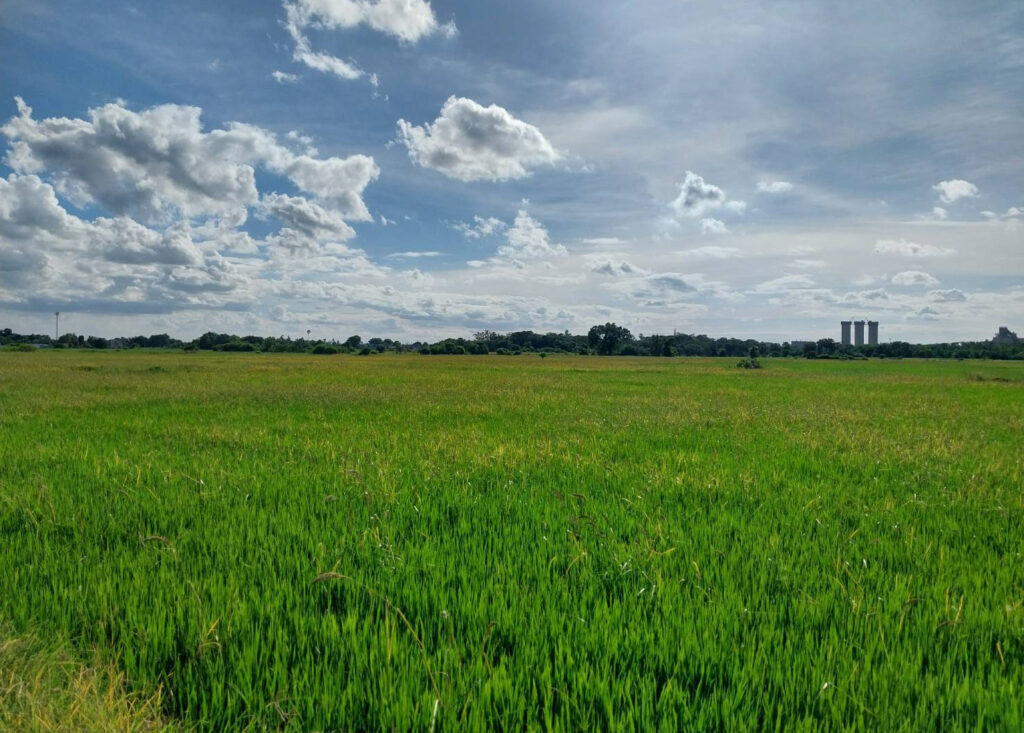 วิวของทุ่งกว้างที่น้ำสามารถไหลเข้ามาถึง