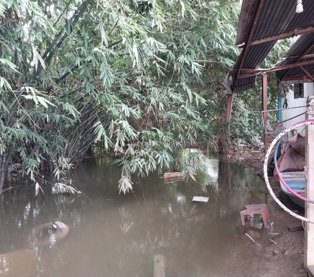 บ้านเกือบทุกหลังจะมีเรือเตรียมไว้พายตอนน้ำท่วม